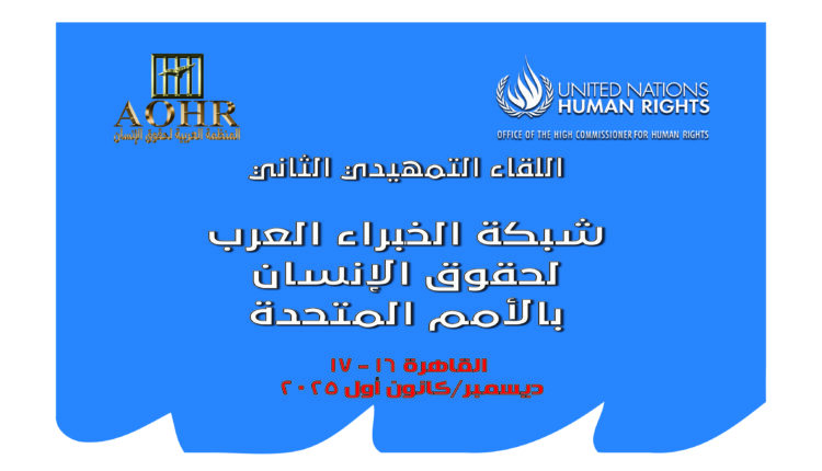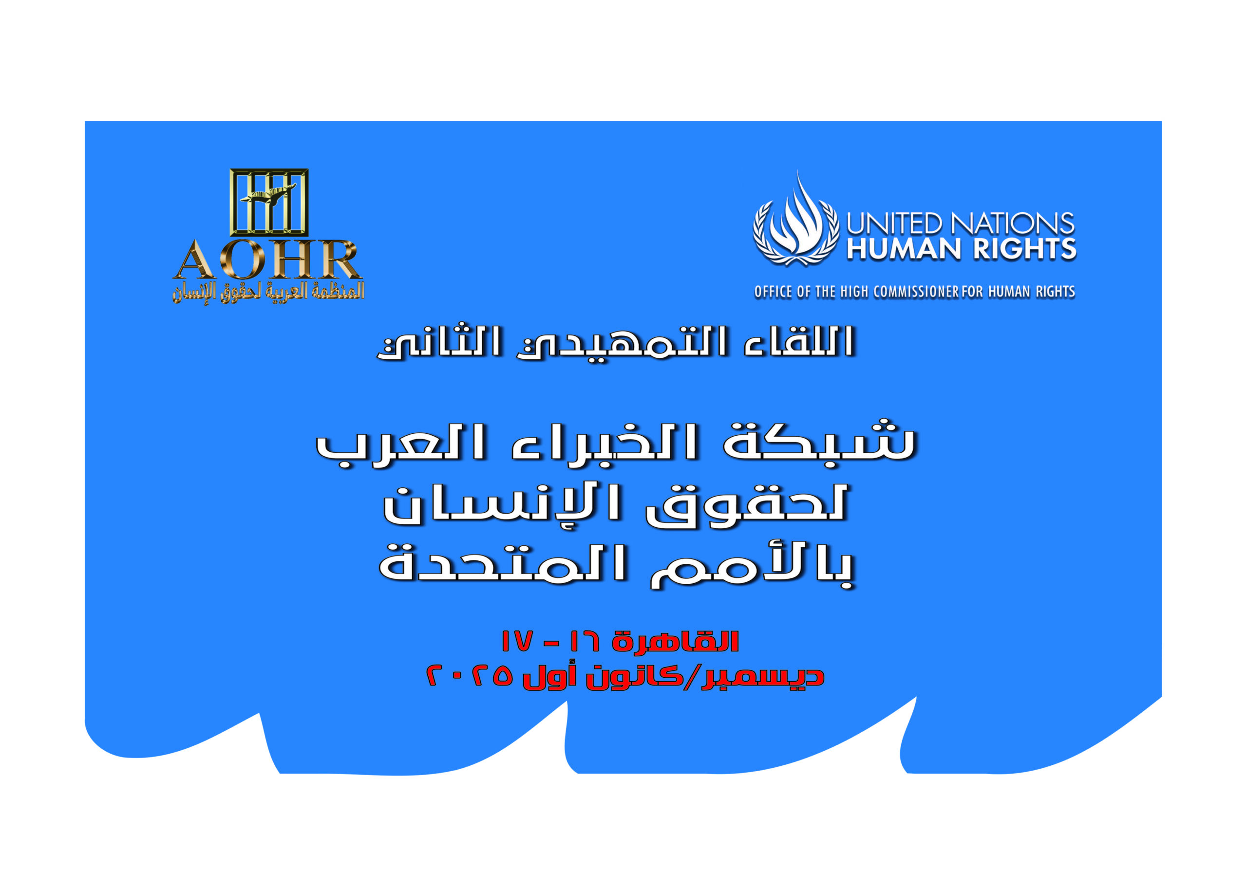في إطار إحياء الذكرى السابعة والسبعين لاعتماد الإعلان العالمي لحقوق الإنسان، تعقد المنظمة العربية لحقوق الإنسان، بالشراكة مع المكتب الإقليمي لمفوضية الأمم المتحدة السامية لحقوق الإنسان، لقاءً تشاوريًا إقليميًا بالعاصمة المصرية القاهرة يومي 16 و17 ديسمبر 2025، يستهدف وضع الأسس المؤسسية لإطلاق شبكة إقليمية لخبراء حقوق الإنسان العرب العاملين ضمن منظومة الأمم المتحدة.