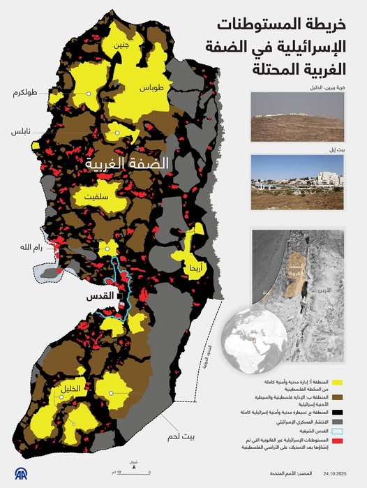 (*) مرفق خريطة للاستيطان في الضفة الغربية والقدس المحتلتين في خريف 2025 استناداً إلى تقارير الأمم المتحدة