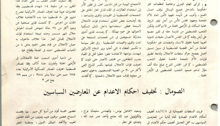 نشرة المنظمة العربية لحقوق الإنسان – نشرة غير دورية – العدد السادس عشر فبراير 1988