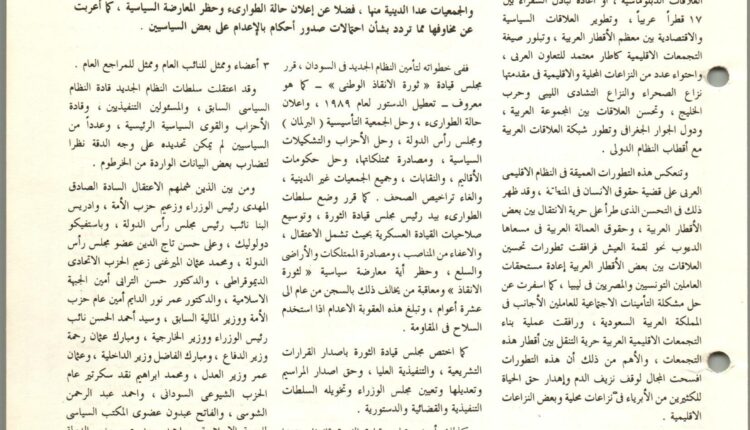نشرة المنظمة العربية لحقوق الإنسان – نشرة غير دورية – العددان 25 -26 يوليو – أغسطس 1989