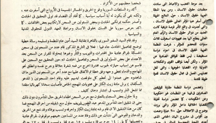 نشرة المنظمة العربية لحقوق الإنسان – نشرة غير دورية – العددان 66 – 67 يوليو/اغسطس 1993 النشرة الاخبارية بواسطة المنظمة العربية لحقوق الإنسان آخر تحديث ديسمبر 16, 2024 0 286 شارك للاطلاع على النشرة بالكامل .. اضغط هنا المنظمة العربية لحقوق الإنسان 0 286 شارك FacebookTwitterWhatsAppالبريد الإلكترونيLinkedin