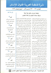 نشرة المنظمة العربية لحقوق الإنسان – نشرة غير دورية – العددان 132 – 133 مارس/ابريل 1999 النشرة الاخبارية بواسطة المنظمة العربية لحقوق الإنسان آخر تحديث ديسمبر 16, 2024 0 447 شارك للاطلاع على النشرة .. اضغط هنا المنظمة العربية لحقوق الإنسان 0 447 شارك FacebookTwitterWhatsAppالبريد الإلكترونيLinkedin