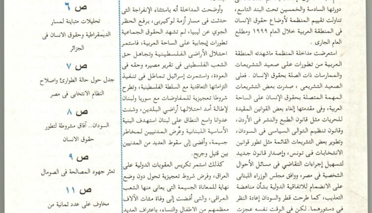 نشرة المنظمة العربية لحقوق الإنسان – نشرة غير دورية – العددان 143 – 144 فبراير/مارس 2000 النشرة الاخبارية بواسطة المنظمة العربية لحقوق الإنسان آخر تحديث ديسمبر 16, 2024 0 370 شارك للاطلاع على النشرة بالكامل .. اضغط هنا المنظمة العربية لحقوق الإنسان 0 370 شارك FacebookTwitterWhatsAppالبريد الإلكترونيLinkedin