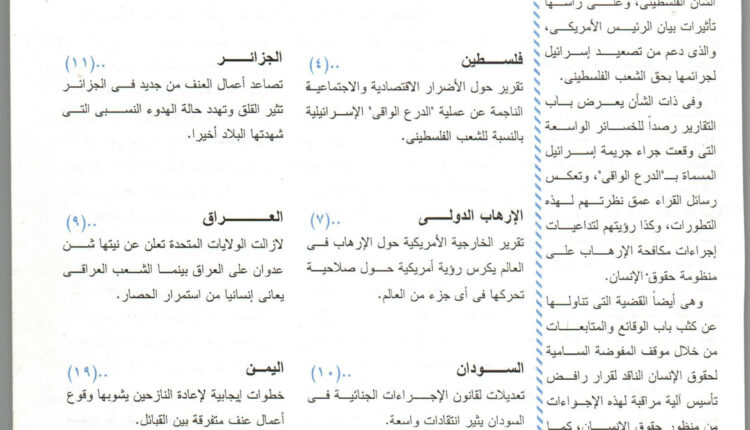 نشرة المنظمة العربية لحقوق الإنسان – نشرة غير دورية – العددان 171 – 172 يونيو / يوليو 2002 النشرة الاخبارية بواسطة المنظمة العربية لحقوق الإنسان آخر تحديث ديسمبر 16, 2024 0 349 شارك للاطلاع على النشرة بالكامل .. اضغط هنا المنظمة العربية لحقوق الإنسان 0 349 شارك FacebookTwitterWhatsAppالبريد الإلكترونيLinkedin