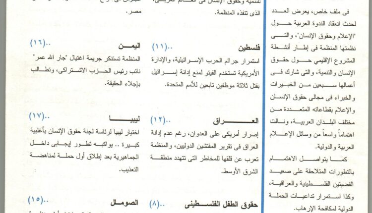 نشرة المنظمة العربية لحقوق الإنسان – نشرة غير دورية – العددان 177 – 178 ديسمبر 2002 / يناير 2003 النشرة الاخبارية بواسطة المنظمة العربية لحقوق الإنسان آخر تحديث ديسمبر 16, 2024 0 336 شارك للاطلاع على النشرة بالكامل .. اضغط هنا المنظمة العربية لحقوق الإنسان 0 336 شارك FacebookTwitterWhatsAppالبريد الإلكترونيLinkedin