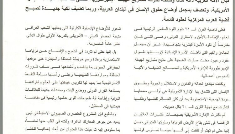 نشرة المنظمة العربية لحقوق الإنسان – نشرة غير دورية – العددان 179 – 180 فبراير / مارس 2003 النشرة الاخبارية بواسطة المنظمة العربية لحقوق الإنسان آخر تحديث ديسمبر 16, 2024 0 299 شارك للاطلاع على النشرة بالكامل .. اضغط هنا المنظمة العربية لحقوق الإنسان 0 299 شارك FacebookTwitterWhatsAppالبريد الإلكترونيLinkedin