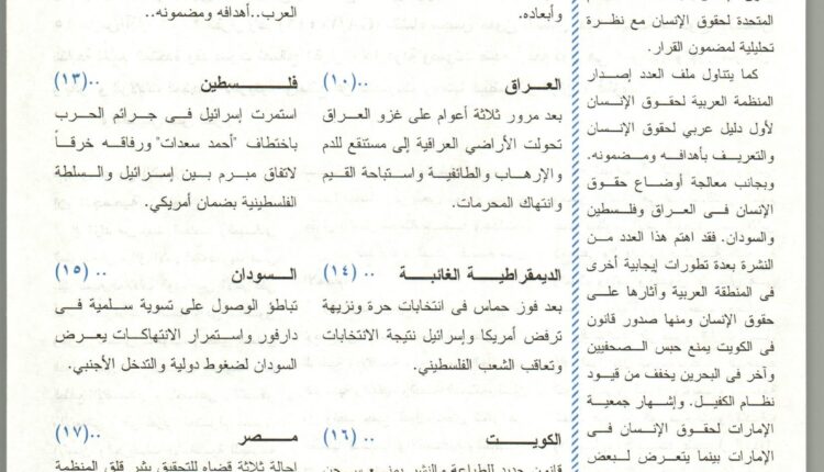 نشرة المنظمة العربية لحقوق الإنسان – نشرة غير دورية – العددان 213 – 214 فبراير / مارس 2006 النشرة الاخبارية بواسطة المنظمة العربية لحقوق الإنسان آخر تحديث ديسمبر 10, 2024 0 368 شارك للاطلاع على النشرة بالكامل .. اضغط هنا المنظمة العربية لحقوق الإنسان 0 368 شارك FacebookTwitterWhatsAppالبريد الإلكترونيLinkedin