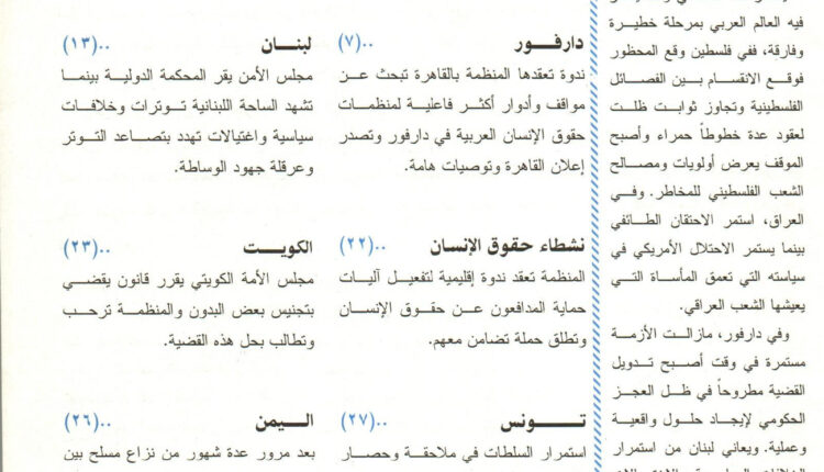 نشرة المنظمة العربية لحقوق الإنسان – نشرة غير دورية – العددان 228 – 229 مايو / يونيو 2007 النشرة الاخبارية بواسطة المنظمة العربية لحقوق الإنسان آخر تحديث ديسمبر 10, 2024 0 287 شارك للاطلاع على النشرة بالكامل .. اضغط هنا المنظمة العربية لحقوق الإنسان 0 287 شارك FacebookTwitterWhatsAppالبريد الإلكترونيLinkedin