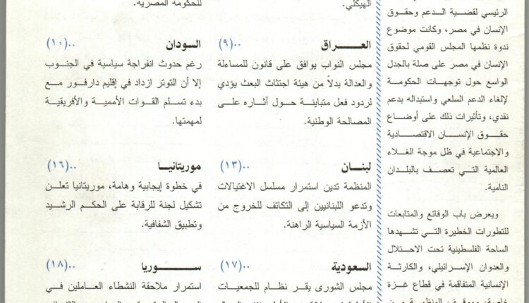 نشرة المنظمة العربية لحقوق الإنسان – نشرة غير دورية – العددان 235 – 236 ديسمبر 2007 / يناير 2008 النشرة الاخبارية بواسطة المنظمة العربية لحقوق الإنسان آخر تحديث ديسمبر 10, 2024 0 345 شارك للاطلاع على النشرة بالكامل .. اضغط هنا المنظمة العربية لحقوق الإنسان 0 345 شارك FacebookTwitterWhatsAppالبريد الإلكترونيLinkedin