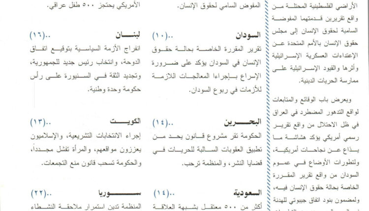 نشرة المنظمة العربية لحقوق الإنسان – نشرة غير دورية – الاعداد 238 – 243 فبراير / يوليو 2008 النشرة الاخبارية بواسطة المنظمة العربية لحقوق الإنسان آخر تحديث ديسمبر 10, 2024 0 294 شارك للاطلاع على النشرة بالكامل .. اضغط هنا المنظمة العربية لحقوق الإنسان 0 294 شارك FacebookTwitterWhatsAppالبريد الإلكترونيLinkedin